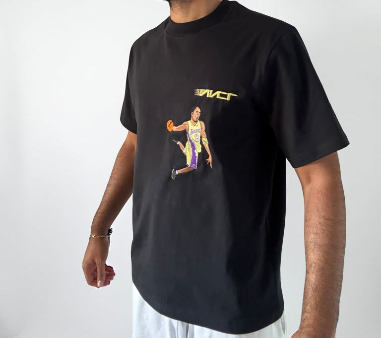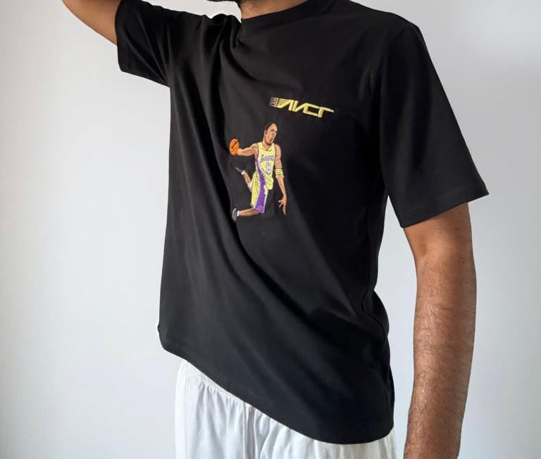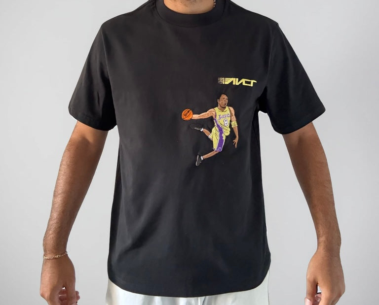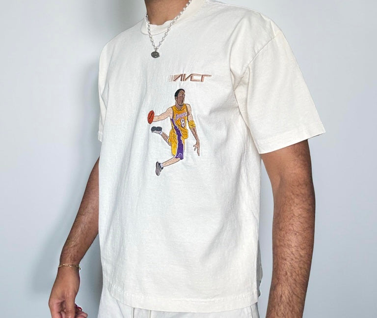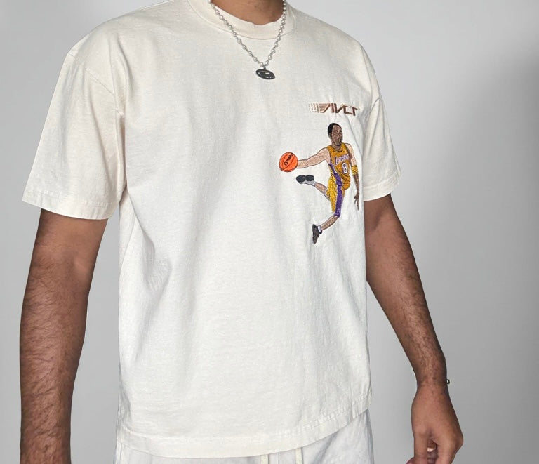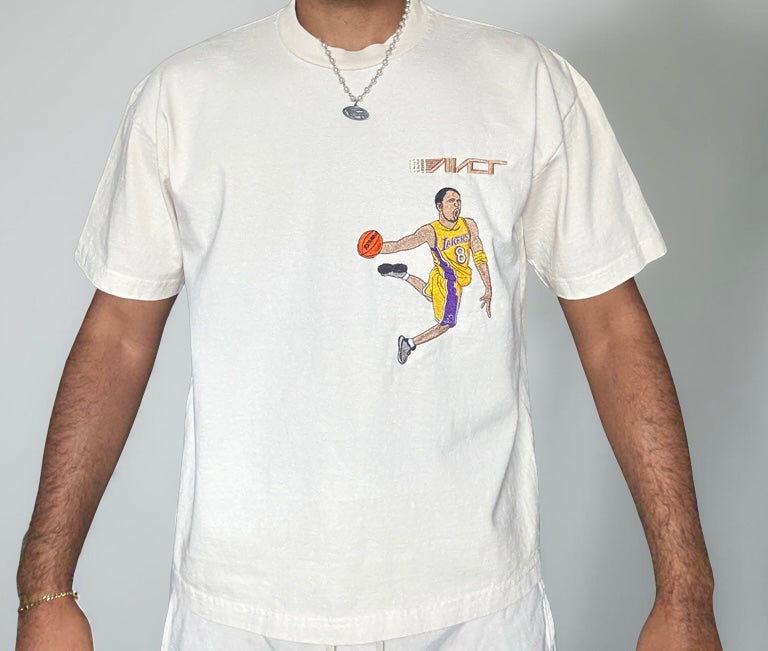Legendary Kobe Bean Bryant Lakers home Jersey shines in one of his iconic dunks wearing numbers 8