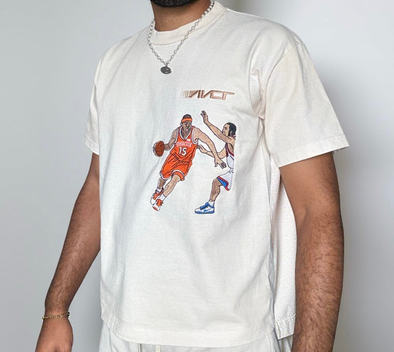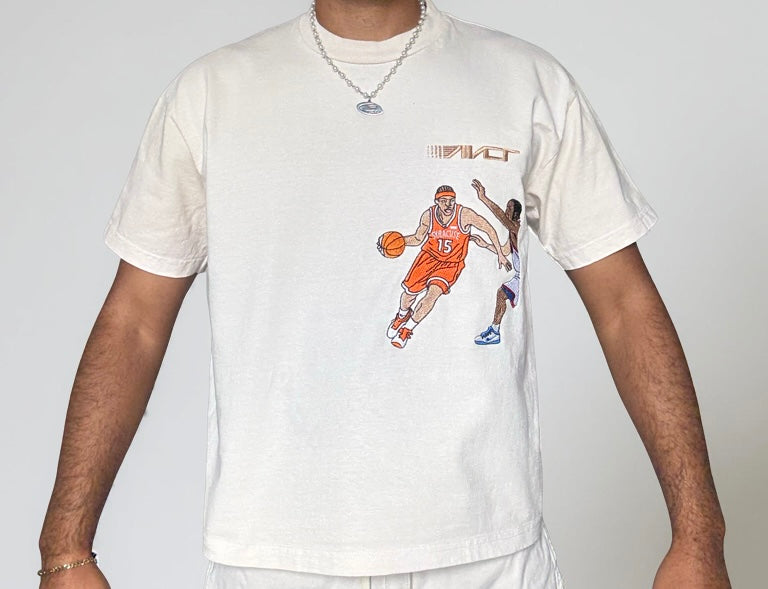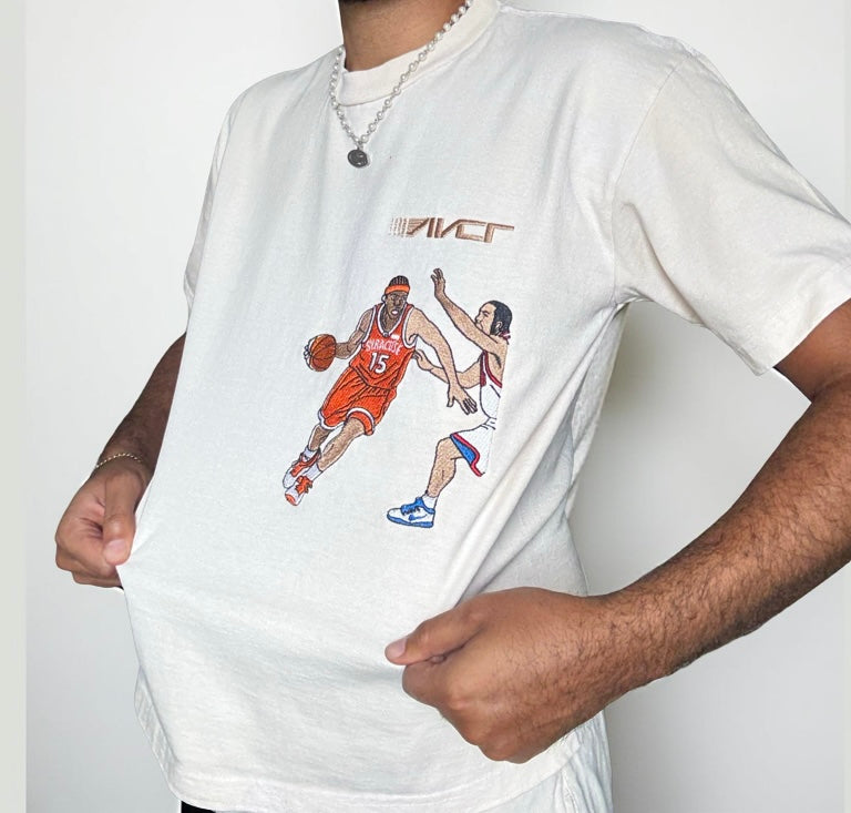 Pay homage to one of the most iconic moments in college basketball history with the AVANCER Syracuse "Melo 03" tee. This premium shirt features a detailed embroidered design of Carmelo Anthony in his legendary Syracuse #15 jersey, capturing his dominance during the 2003 NCAA Championship run.